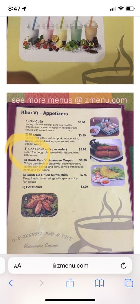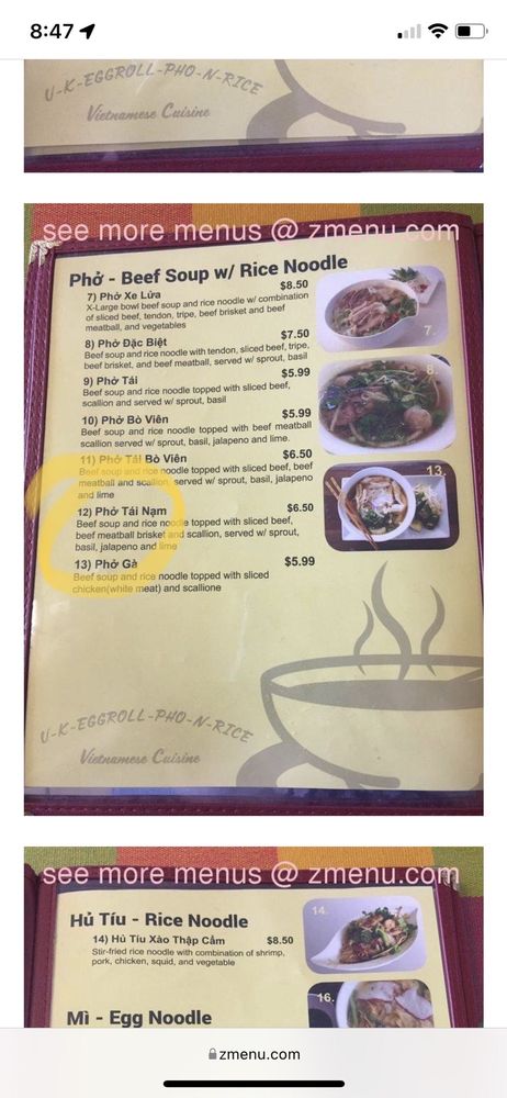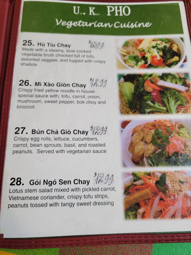 UK Pho Vietnamese Cuisine Menu