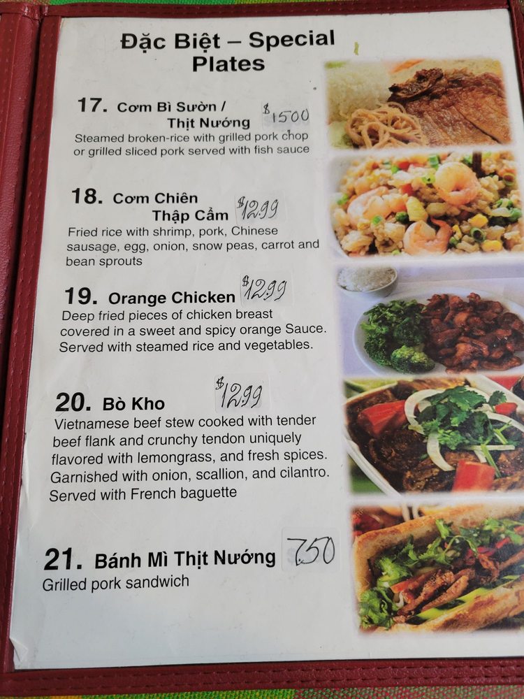 The menu is a testament to freshness and quality, featuring savory appetizers like Goi du du—a delightful papaya salad—and crispy Cha Gio eggrolls. For the main course, the Pho Chay dac Biet stands out, with its rich vegetable broth brimming with tofu and veggies. Customers rave about the stir-fried beef, infused with lemongrass and perfectly tender.